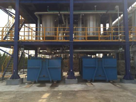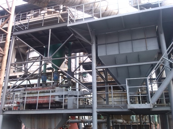 图为某石化公司烟气脱硫循环液处理工段应用我公司的干渣设备图片,其待处理废水中含有一定量的硫酸盐颗粒物,因此要将其硫酸盐颗粒物进行回收利用,故该厂家使用我公司的干渣设备来进行废水的过滤,并对滤后渣进行有效的回收利用,经投产运行后,使用效果良好,渣含水率60%。  下图为某化肥制造公司磷酸脱氟工艺应用我公司的干渣设备图片,其液体中主要成分为五氧化二磷,要求过滤后五氧化二磷含量<0.5%,含水率在10%以下,经过出干渣设备运行后,实际五氧化二磷含量<0.28%,含水率在8~10%,氟硅酸钾纯度达到90%以上。使用效果良好